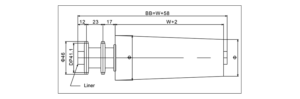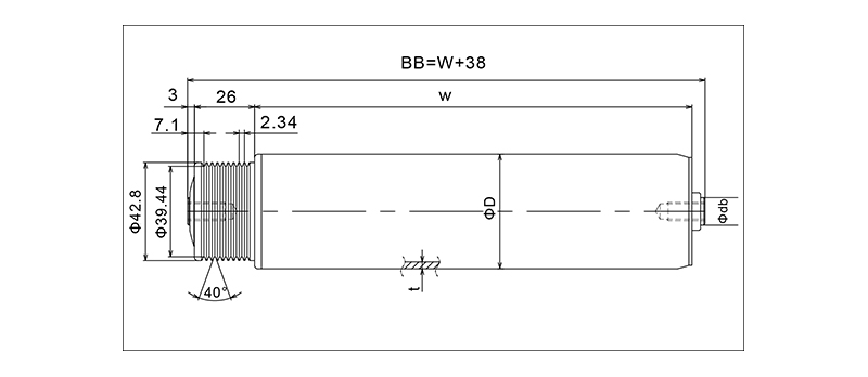 | Tip | SilinDir boyutu | Silindir genişliği | Silindir malzemesi | Taşıma | Şaft çapı | Astar boyutu | Zincir dişlisi | d | D2 | A | B | W1 | BB |