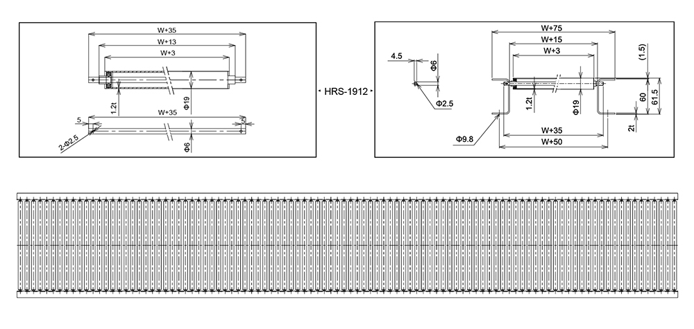 | Konveyörün genişliği W 75 (mm) | 175 | 275 | 375 | 475 | 575 | 675 | 675 | 675 | |