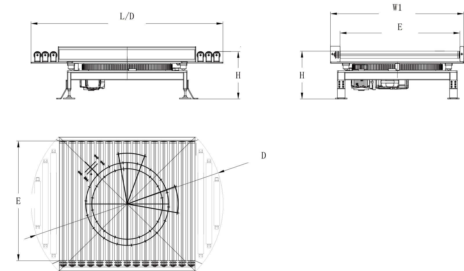 Konveyör döner tablosu 45 derece, 90 derece, 180 derece ve 360 derece dönebilir; Dönen bir çerçeveye bir konveyör kuran özel bir taşıma cihazdır. Malzemenin boyutuna ve ağırlığına göre, dönen tablonun çapı ve yük taşıma kapasitesi özelleştirilebilir; Taşıma parçası, herhangi bir taşıma fonksiyonu olmadan bir kayış konveyör, silindir konveyör, zincir konveyör veya bir metal masa olabilir.