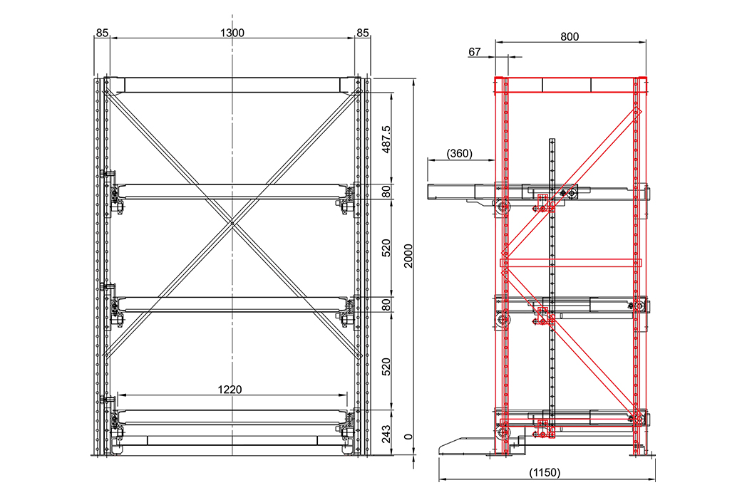 Ağır hizmet tipi kalıp raflarının yük taşıma kapasitesi katman başına ≥ 800kg iken, hafif çekmece raflarının yük taşıma kapasitesi katman başına < 800kg'dır. Rafların yüksekliği genellikle 2200mm'nin altındadır ve genel yapı kolay montaj için birleştirilir.