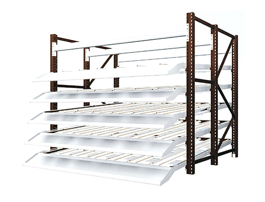 Akıcı raflar genellikle ortada ila hafif yük rafları üzerinde silindir tipi alüminyum alaşım veya sac akıcı çubuklar kullanılarak inşa edilir, akıcı çubuklar yaklaşık 3 dereceye yerleştirilir. Akıcı raflar tarafından taşınan mallar genellikle kağıt halinde paketlenir veya içerideki plastik ciro kutularına yerleştirilir, akış elde etmek için kendi ağırlıklarını kullanır ve malların dışına, depolama ve erişimi kolaylaştırır. Akıcı rafların birim yük kapasitesi genellikle katman başına 100kg civarındadır ve raf yüksekliği 2,5 metre arasındadır. Akıcı raflar, montaj hatlarının her iki tarafında, montaj hattı üretimi ve dağıtım merkezlerindeki toplama işlemleri için proses dönüşümü için uygundur. Malların bilgi yönetimini elde etmek için elektronik etiketlerle donatılabilir. Otomotiv, ilaç, kimyasal ve elektronik gibi endüstrilerde yaygın olarak kullanılır.