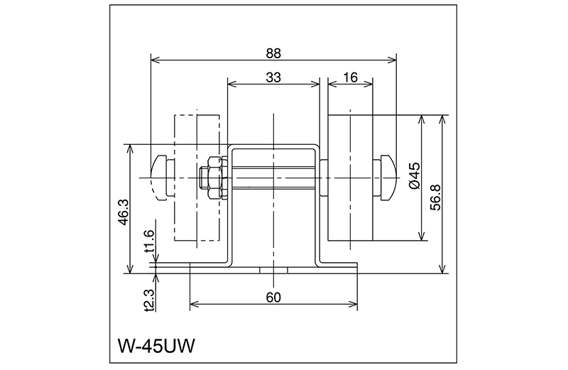 | W-45UW | 45 × 16 × 8 × 22 | M8 × 65L | 46.3 × 60 × 33 × 87 × 1.6 2.3 | 56.8 | 1800 · 2400 · 3000 | 50 · 75 · 100 · 150 | 25 | ABS |