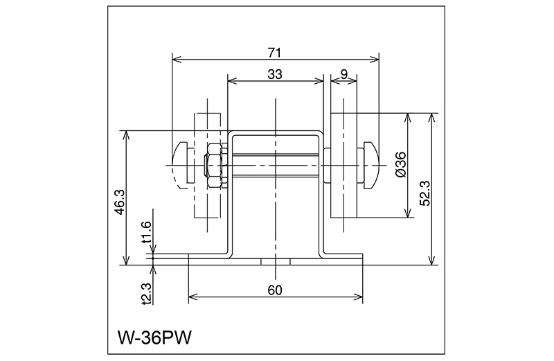 | W-36PW | 36 × 9 × 8 × 14 | M8 × 55L | 46.3 × 60 × 33 × 71 × 1.6 2.3 | 52.3 | 1800 · 2400 · 3000 | 50 · 75 · 100 · 150 | 10 | Pom |