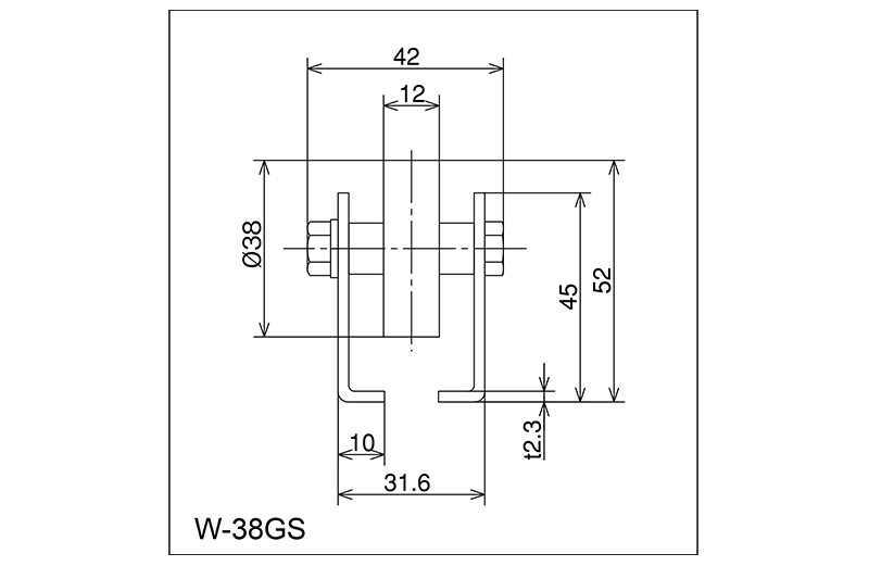 | W-38GS | 38 × 12 × 6 × 27 | M6 × 38L | 45 × 32.6 × 10 × 42 × 2.3 | 52 | 1800 · 2400 · 3000 | 50 · 75 · 100 · 150 | 30 | POM |